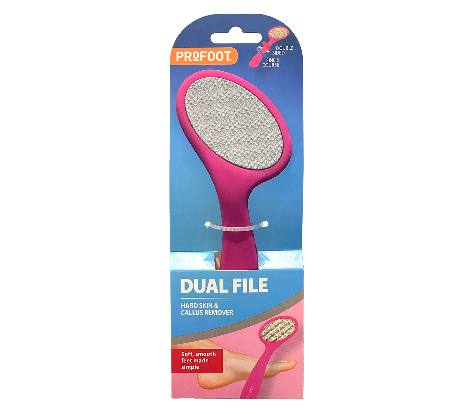 Experience salon-quality foot care at home with the Profoot Dual File. Its coarse side effectively removes tough calluses, while the fine side smooths your feet for a soft finish.